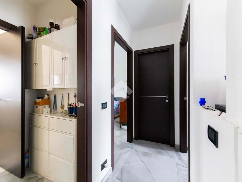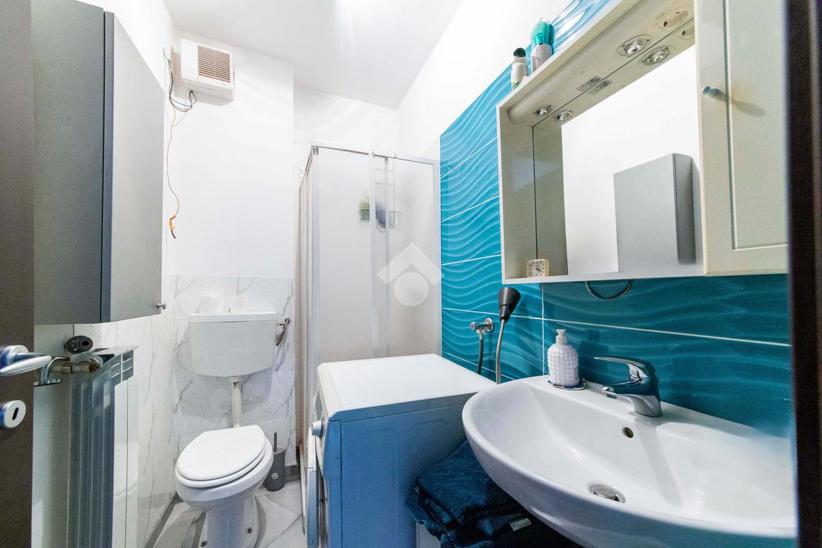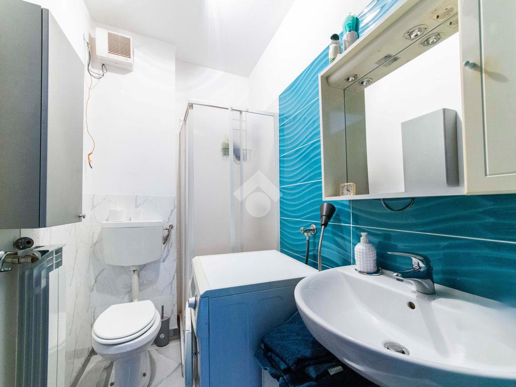 Proseguendo lungo il disimpegno, sulla sinistra, troviamo un secondo bagno cieco, curato nei dettagli e ben organizzato, con la presenza di un comodo box-doccia.