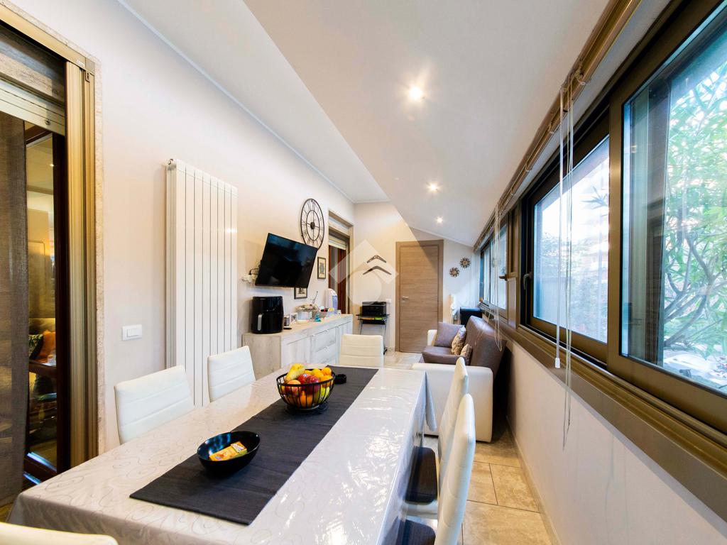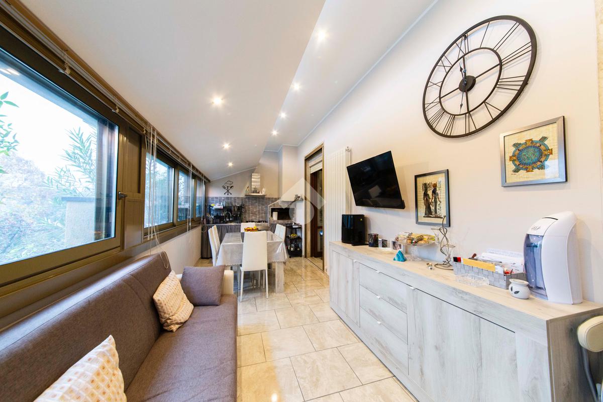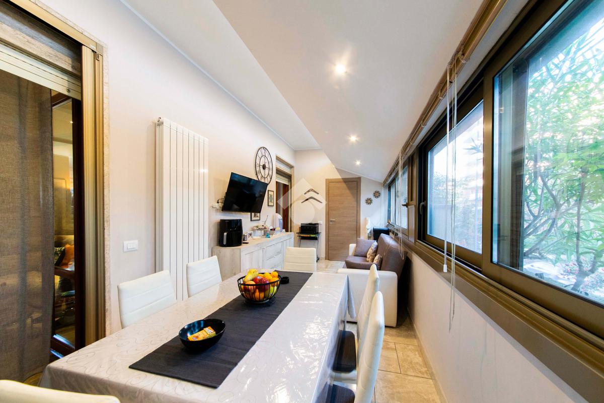Viale dei Pini – Pieve Emanuele (MI) In tranquilla e servita zona di Pieve Emanuele, proponiamo in vendita un elegante TRELOCALI con DOPPIA ESPOSIZIONE, sito al primo piano di una palazzina di recente costruzione. L’ingresso, tramite porta blindata, introduce in un ambiente accogliente e ben distribuito: sulla destra si apre un salotto ampio e raffinato, definito da uno stile elegante e curato nei minimi dettagli, mentre sulla sinistra si sviluppa la cucina con penisola, finestrata ideale per chi ama cucinare in un contesto confortevole e funzionale. Dal salotto si accede a una veranda finestrata, spazio versatile che ospita una seconda cucina esterna, completa di canna fumaria e caminetto, perfetta per pranzi/cene all’aperto o momenti conviviali in totale libertà. Proseguendo, troviamo una comoda zona lavanderia, progettata per garantire ordine e praticità. A valorizzare l’intero ambiente è la splendida pavimentazione in marmo, che si estende in modo uniforme e continuo lungo tutto l’immobile, conferendo armonia ed eleganza. Lo spazio è rifinito con infissi in legno con doppio vetro, presenti in tutti gli ambienti, che garantiscono eccellente isolamento termico e acustico. L’abitazione è inoltre dotata di zanzariere e inferriate lungo tutto il perimetro, elementi che coniugano comfort, sicurezza e praticità, senza rinunciare all’eleganza. Proseguendo dal soggiorno, un comodo disimpegno distribuisce in maniera razionale gli altri ambienti della casa. Il bagno è finestrato e rifinito con materiali di qualità, scelti per creare un’atmosfera rilassante e accogliente. Le pareti donano luminosità e ampiezza, mentre i dettagli cromati e le linee pulite degli arredi assicurano un’estetica moderna e funzionale. È dotato di box doccia, lavabo con mobile contenitore e specchio retroilluminato, combinando praticità e design. L’ambiente più riservato e accogliente della casa è la camera matrimoniale principale, un vero rifugio di tranquillità. Ampia e luminosa, dispone di un affaccio sulla veranda, che garantisce ulteriore luce naturale e uno sfogo esterno. La zona notte comprende inoltre una seconda camera matrimoniale leggermente più ridotta, ideale per ospiti, studio o ambiente multifunzionale, senza rinunciare a comfort e privacy. La qualità dei materiali naturali si combina con impianto di aria condizionata, con split presenti in tutti gli ambienti principali, garantendo il massimo comfort. La posizione strategica, in un contesto riservato ma ben servito, consente di raggiungere facilmente i principali servizi, scuole, negozi e collegamenti con Milano. Un'opportunità da non perdere per chi desidera vivere in un ambiente curato, elegante e pronto da abitare. COMPLETA LA SOLUZIONE LA PRESENZA DI DUE POSTI AUTO SCOPERTI. Ogni agenzia ha un titolare ed è autonoma.