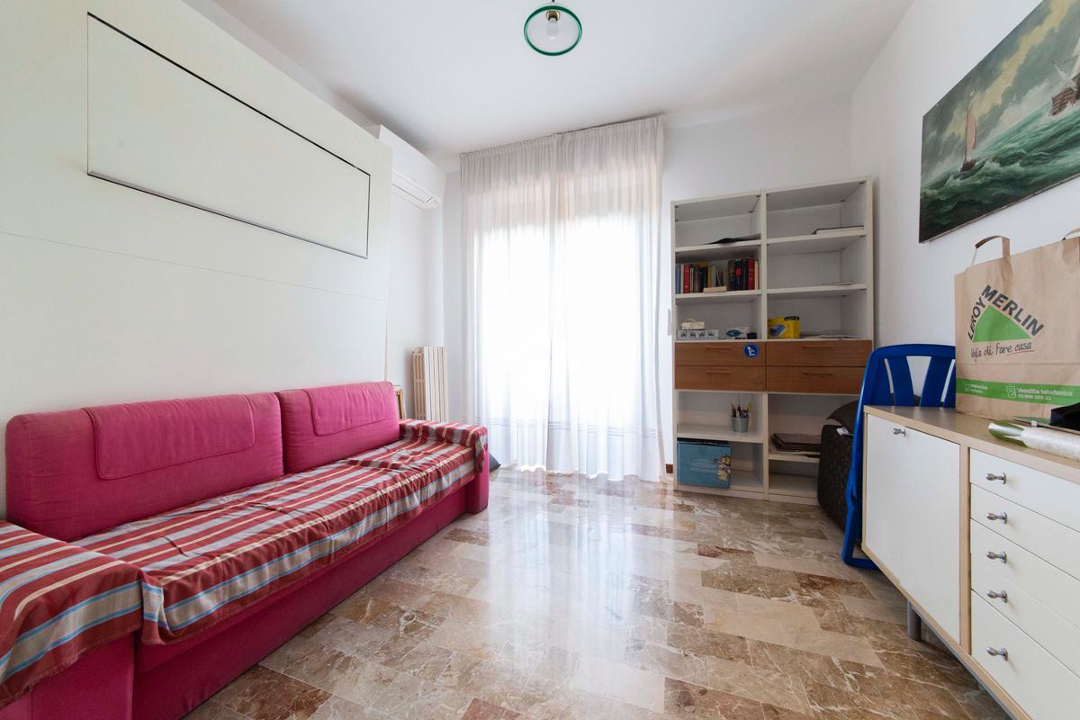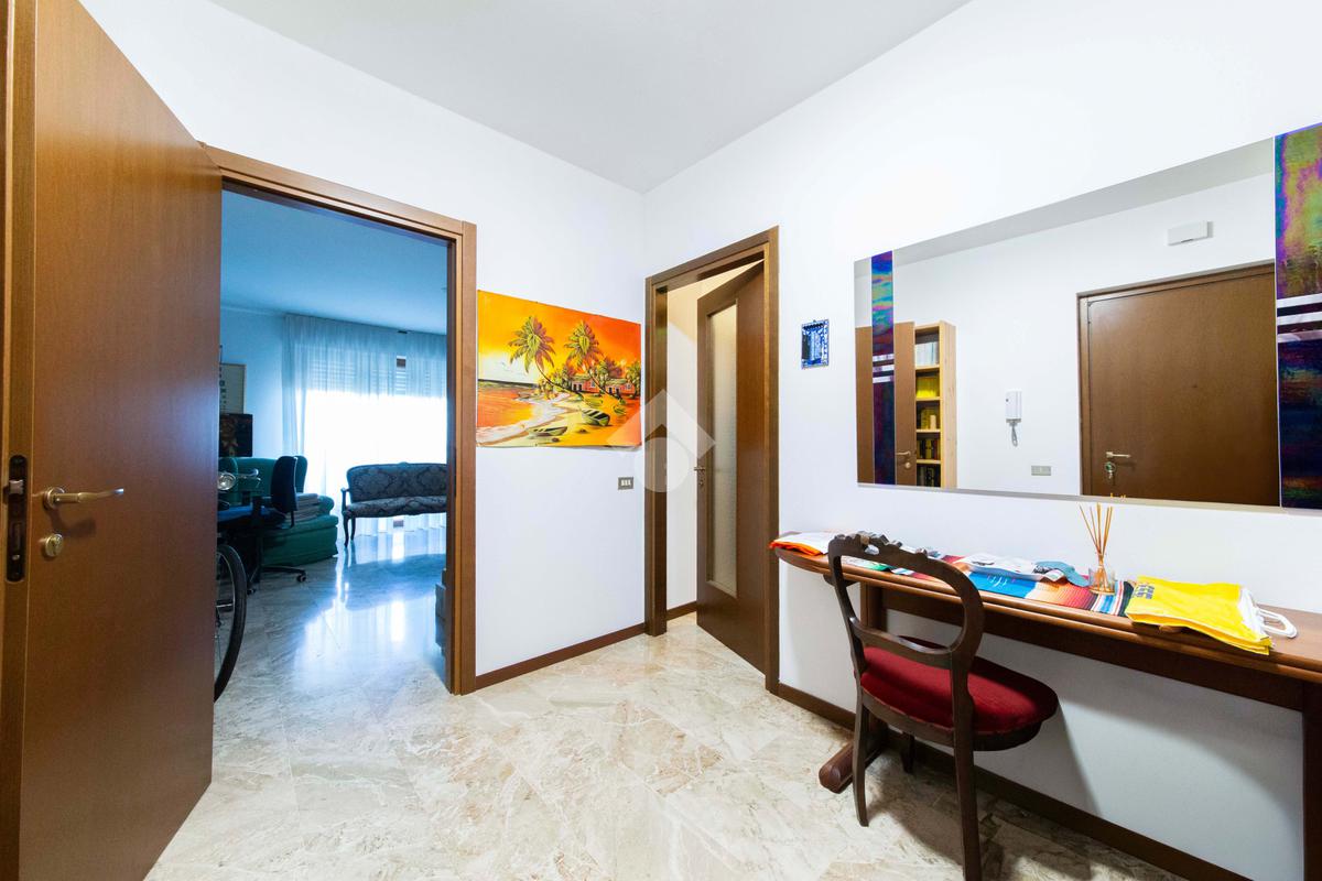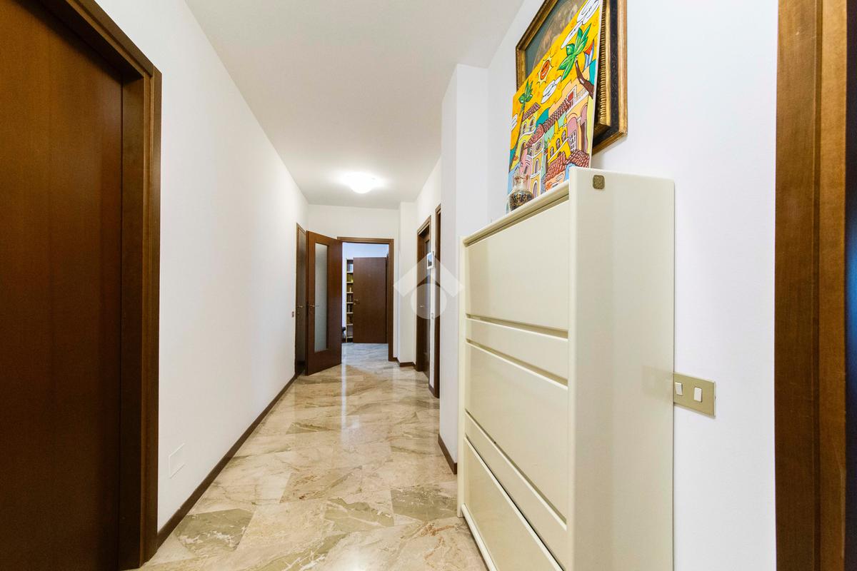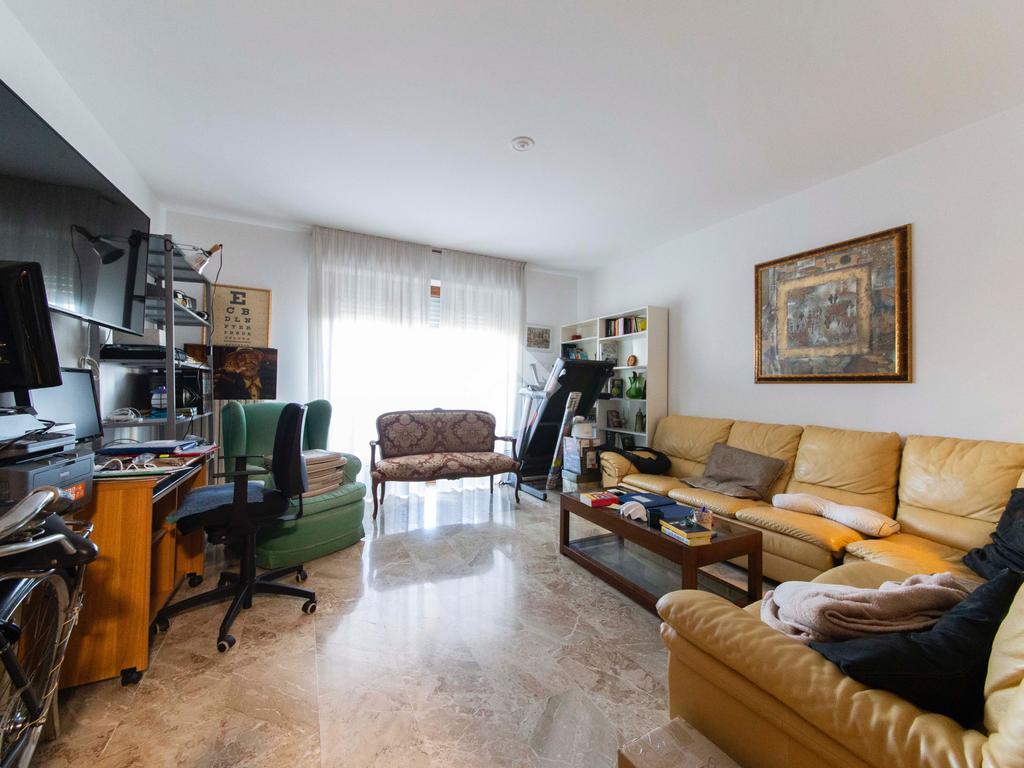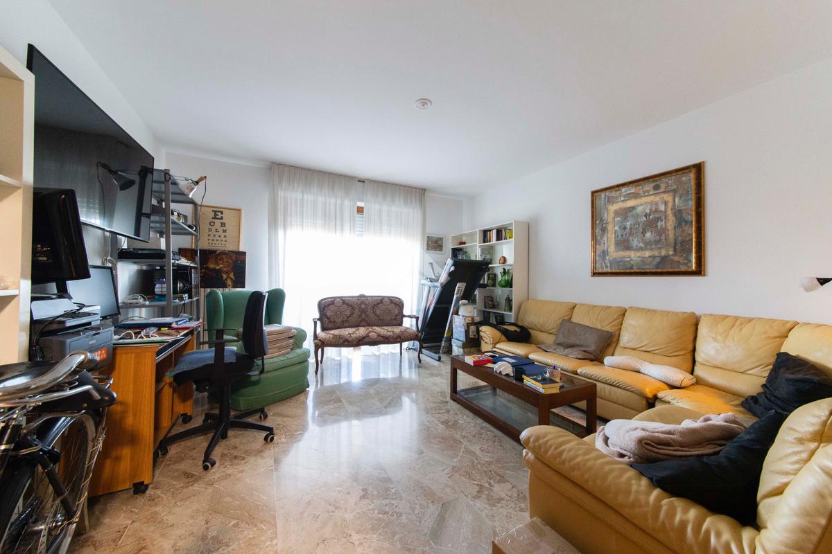 L’ingresso avviene tramite porta blindata che immette direttamente nell’ampio e luminoso soggiorno con affaccio esterno a terrazza, impreziosito dalla pavimentazione in marmo estesa in maniera uniforme lungo tutta l’abitazione, che conferisce un tocco di raffinatezza all’ambiente.