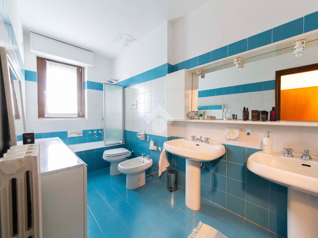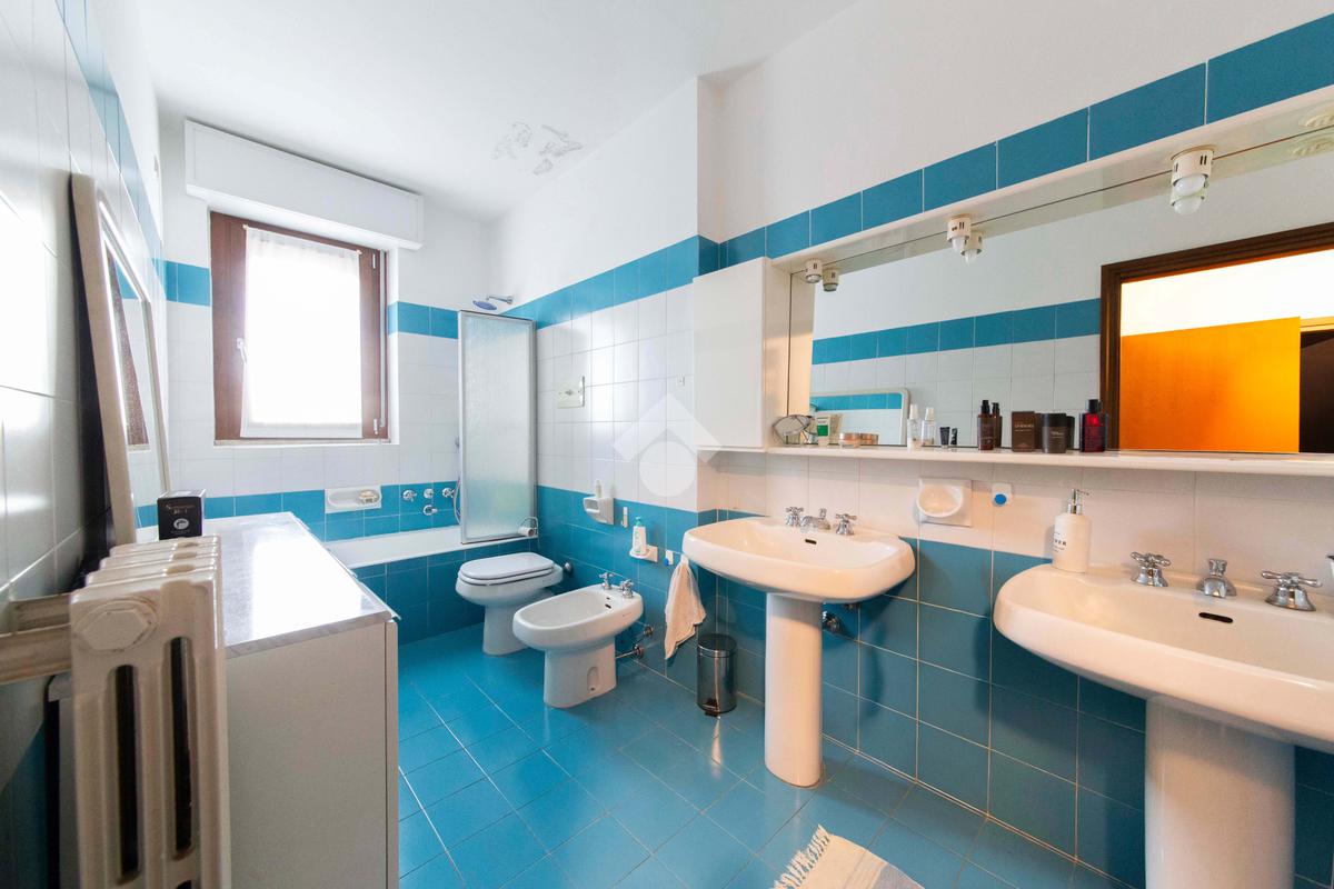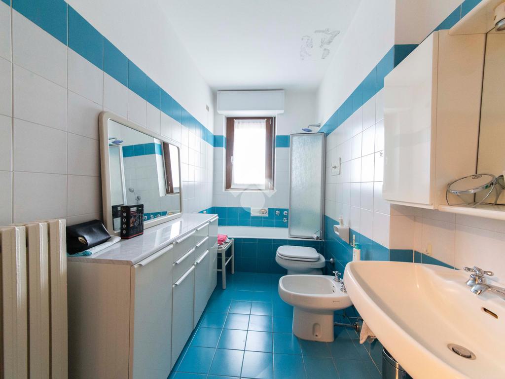 Proseguendo lungo il disimpegno, sulla destra, troviamo un primo bagno cieco, ideale come bagno di servizio per gli ospiti, curato nei dettagli e ben organizzato per ottimizzare gli spazi con la presenza di una comoda doccia. Il secondo bagno si presenta con finiture eleganti e materiali di qualità, selezionati per creare un’atmosfera rilassante e accogliente. È dotato di vasca, comodo e di facile accesso, perfetto per chi ama concedersi momenti di benessere quotidiano.